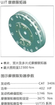 UJT摩擦限距器安装在传动轴法兰上。限距器的安全扭矩设定为低于机械离合器的最大扭矩和传动轴的破坏扭矩值,限距器起到同时保护离合器和传动轴的作用。